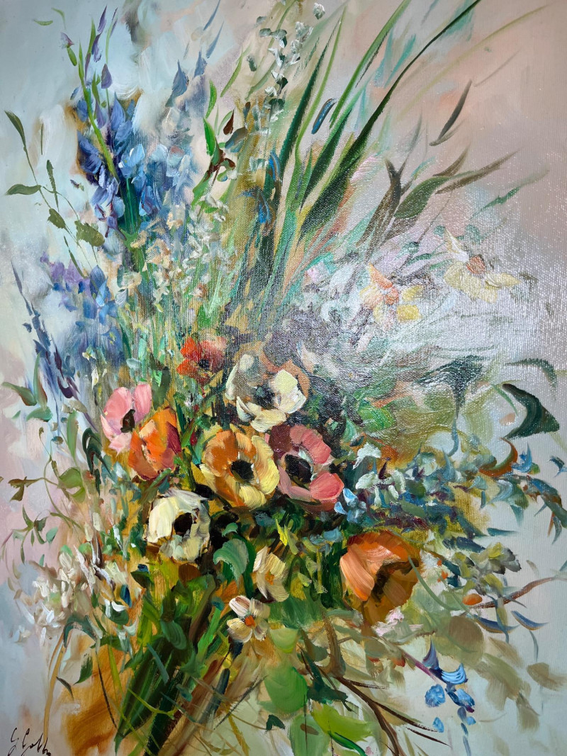 Lot # 56 - Professionally Framed Floral Painting on Canvas Signed by Artist