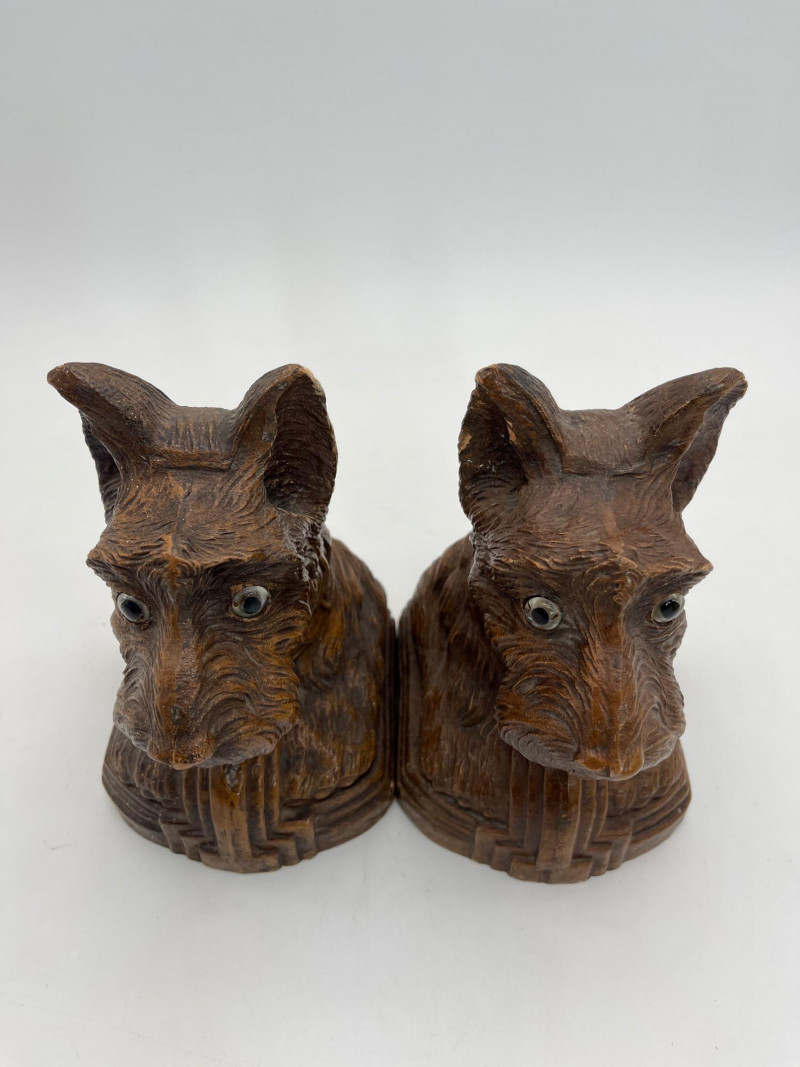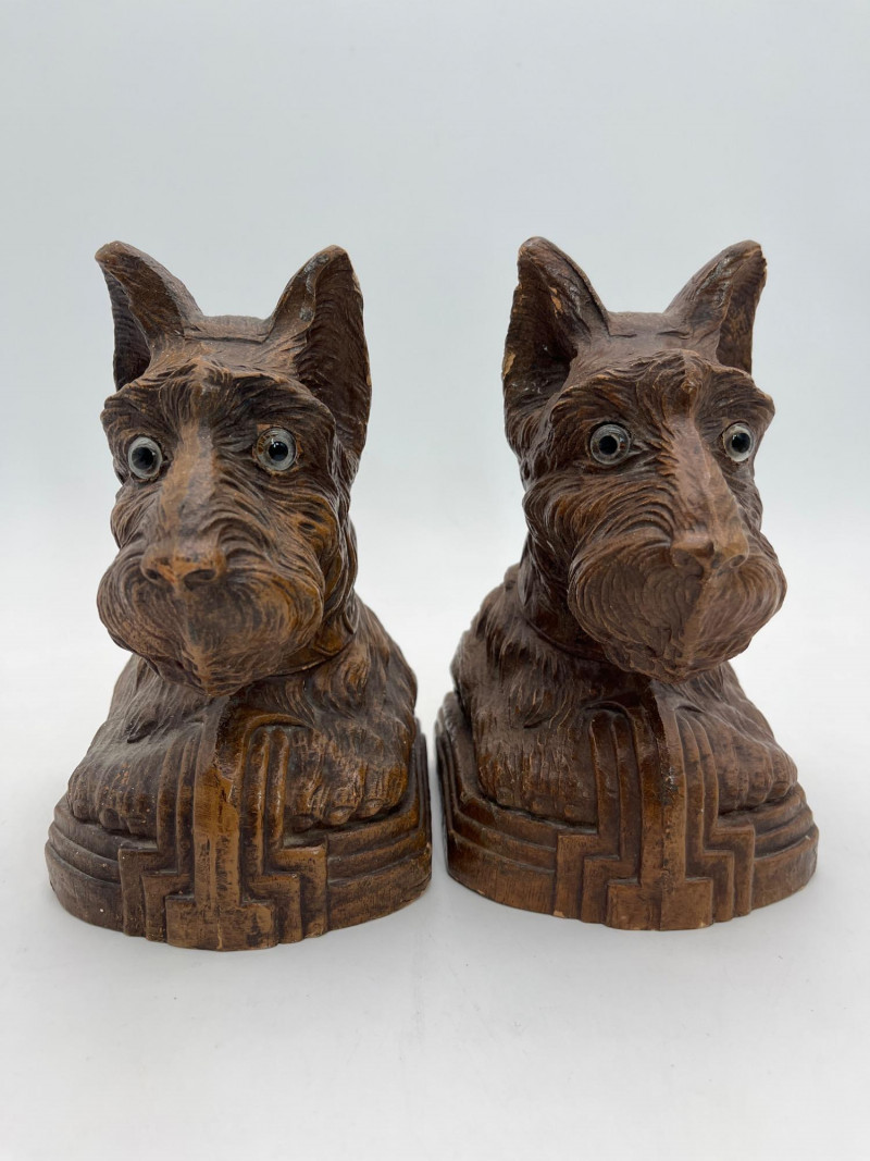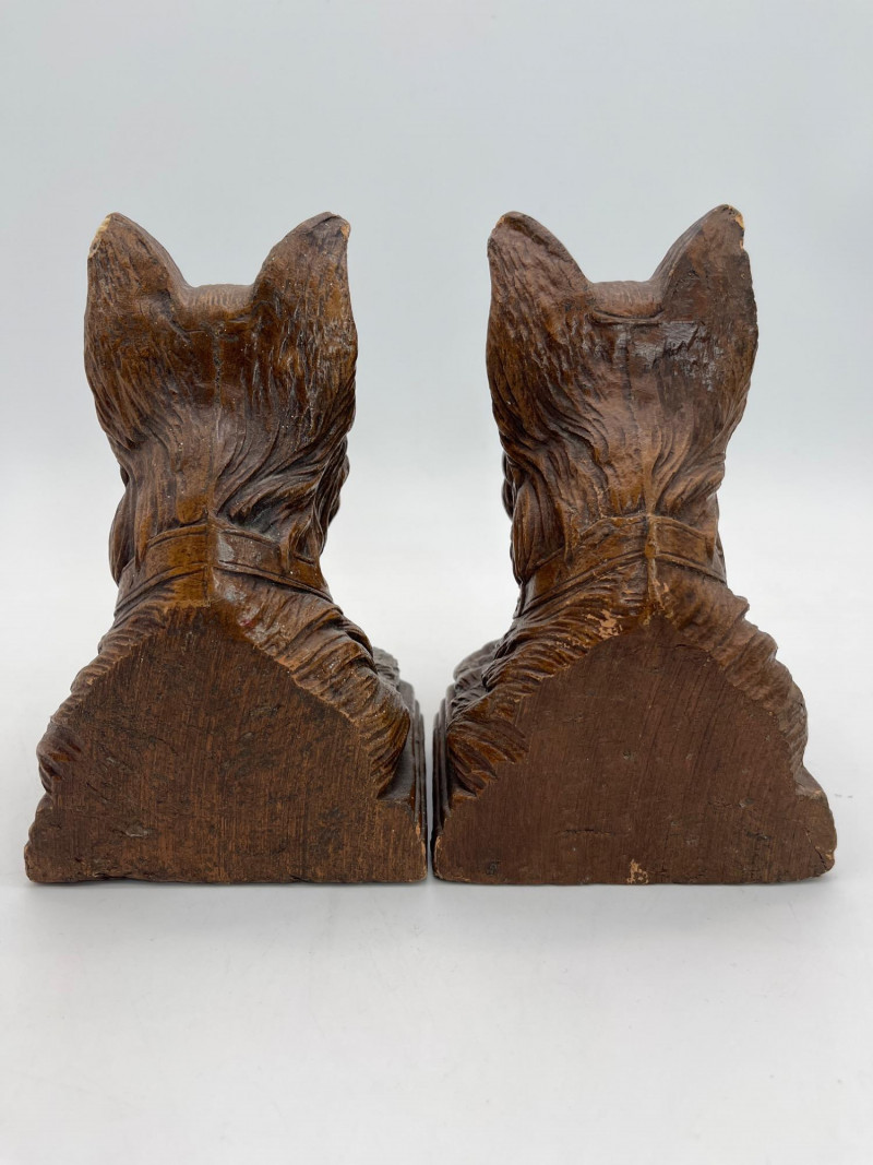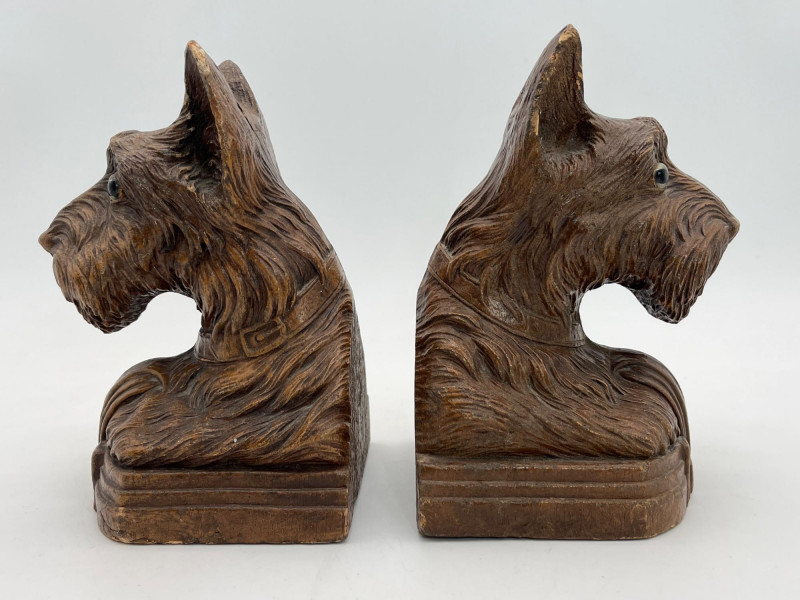 Mid-Century OrnaWood Scottie Dog Book Ends These are 7" tall and have substantial weight to them. See photos for details regarding condition.