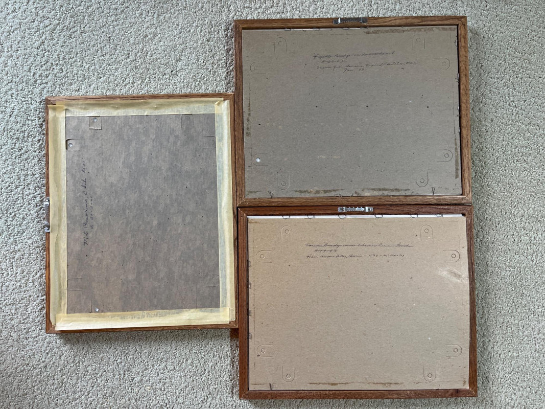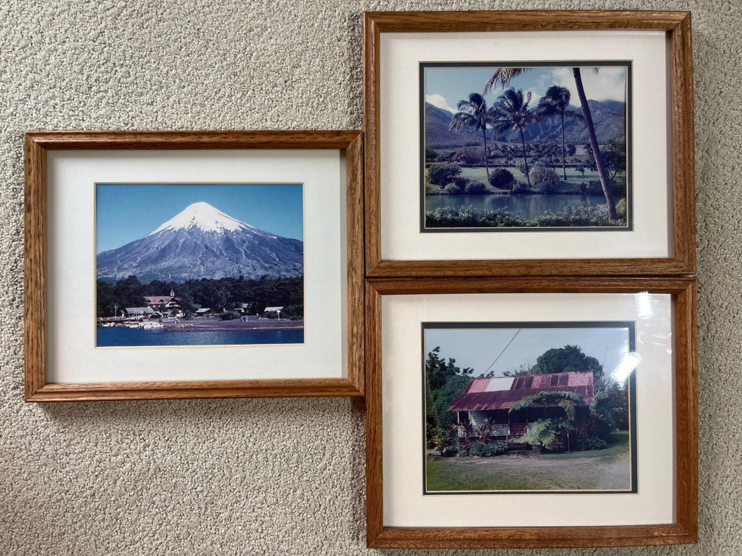 Three Vintage Framed and Matted Travel Photographs Frames measure 15" x 12" and there are hand written notes on the back of each indicating when and where the photo was taken.
