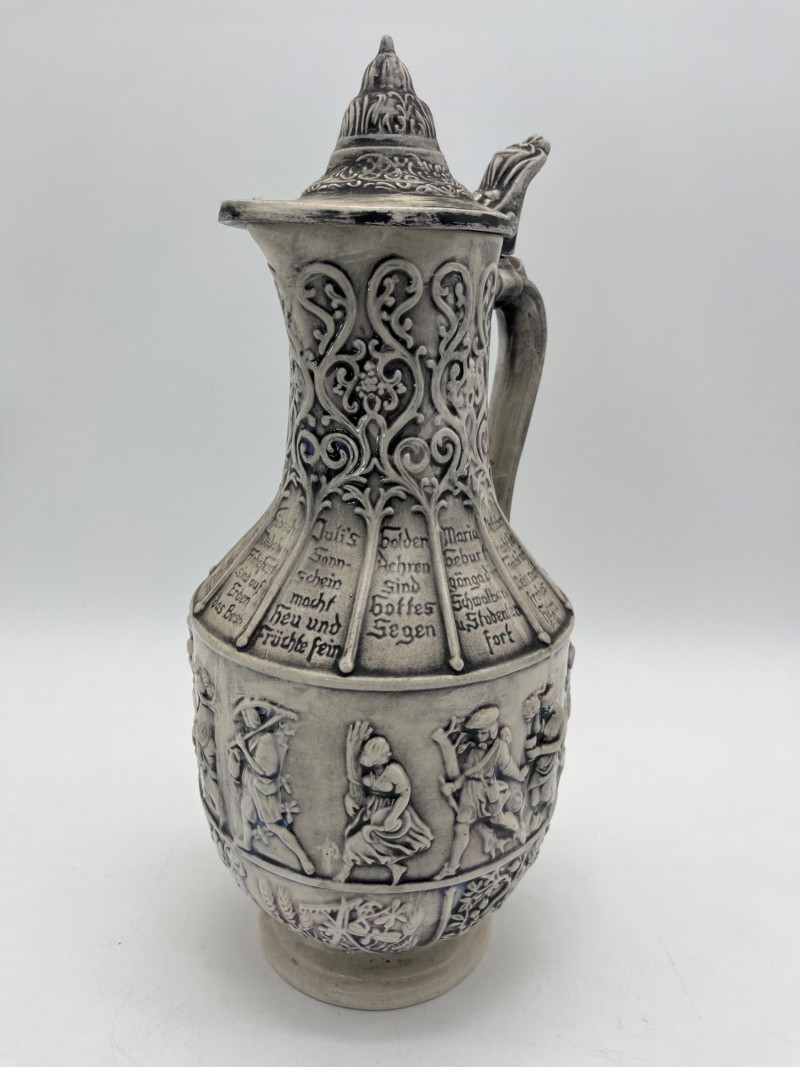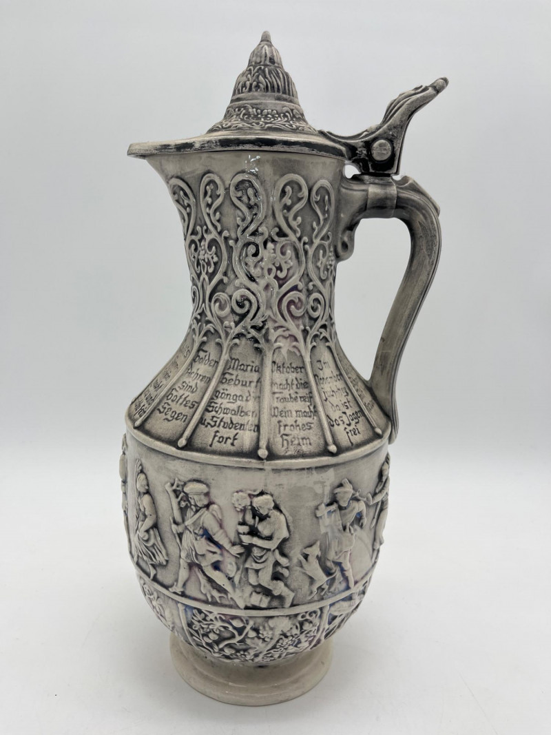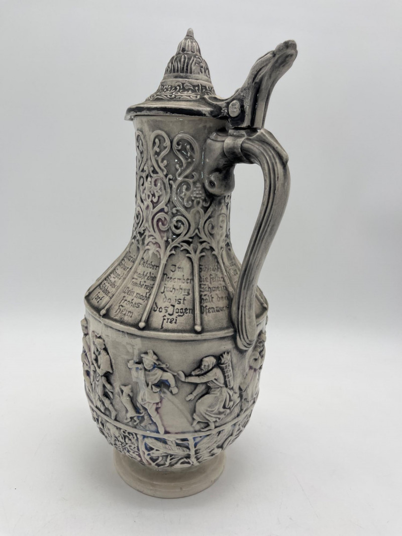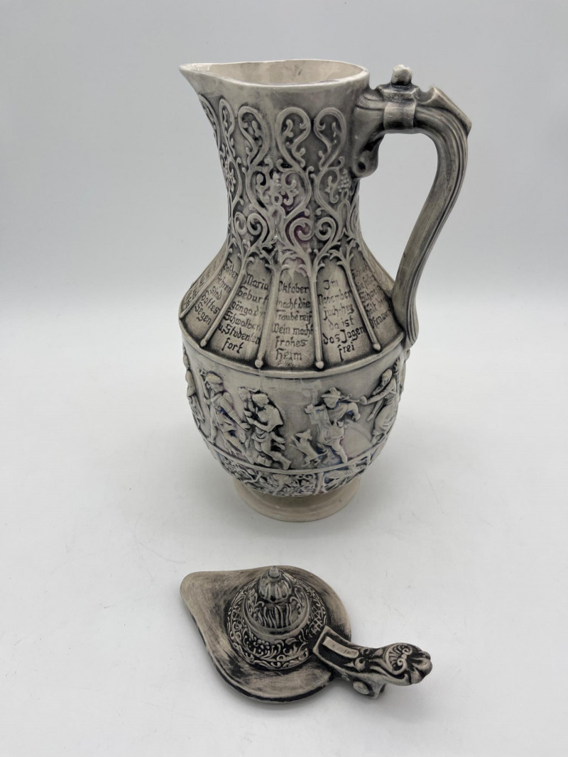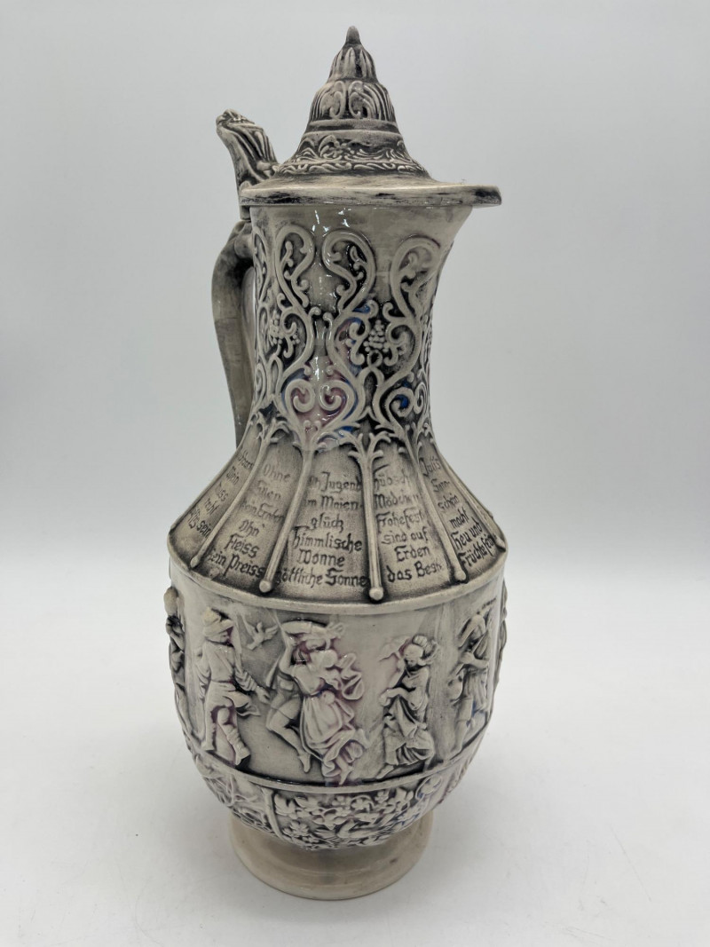 German Styled Ceramic Water Jug with Lid 14 inches tall with (removeable) lid. In good condition with no noted damage.