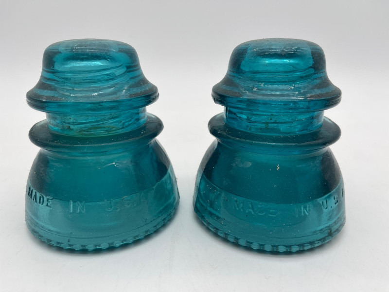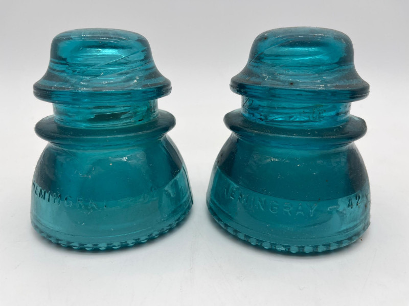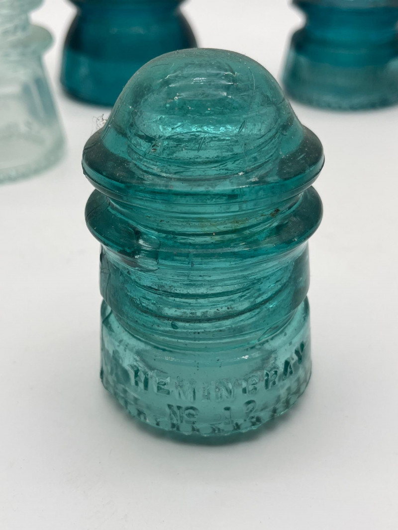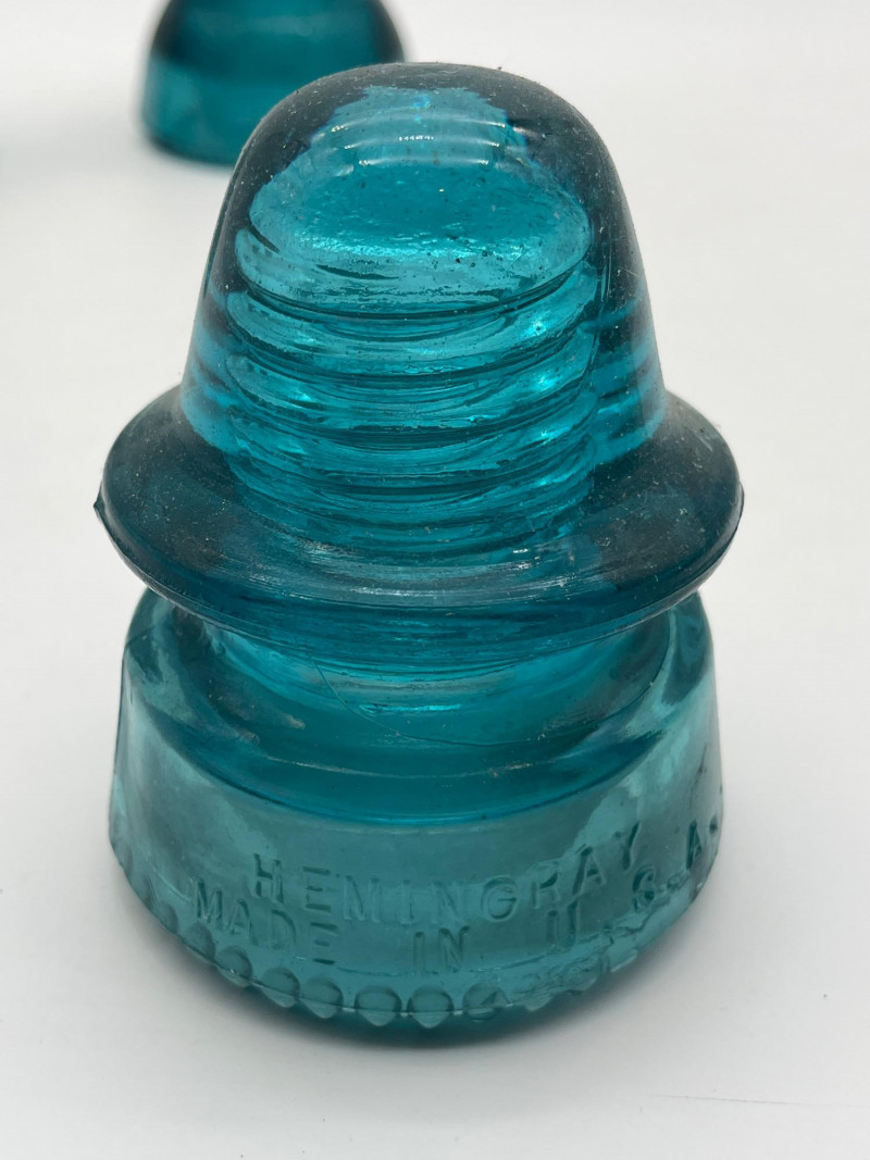 Hemingray Blue and Teal Glass Insulators See photos for details regarding condition.