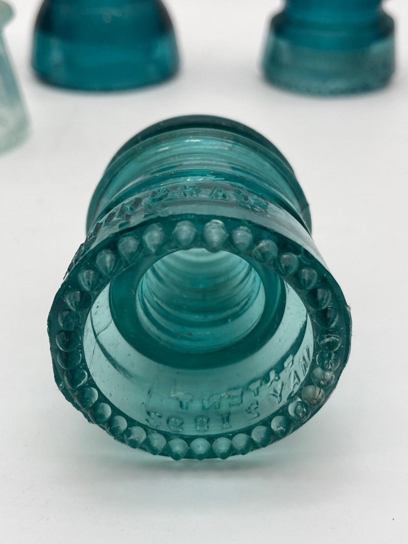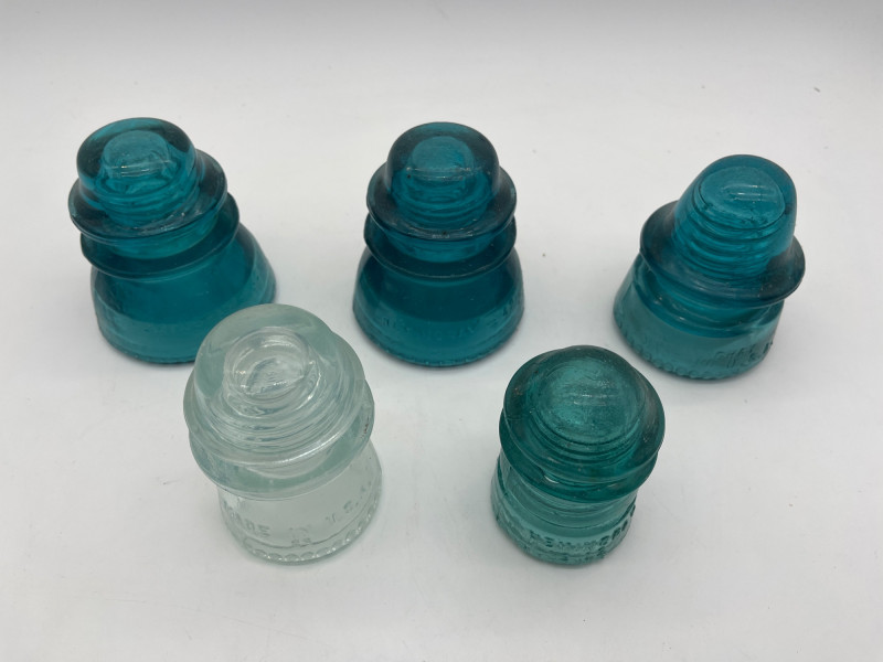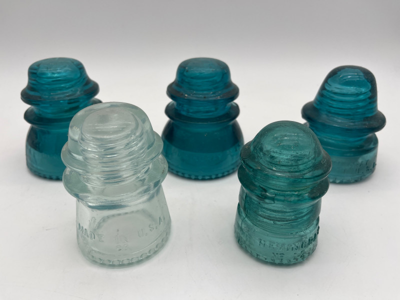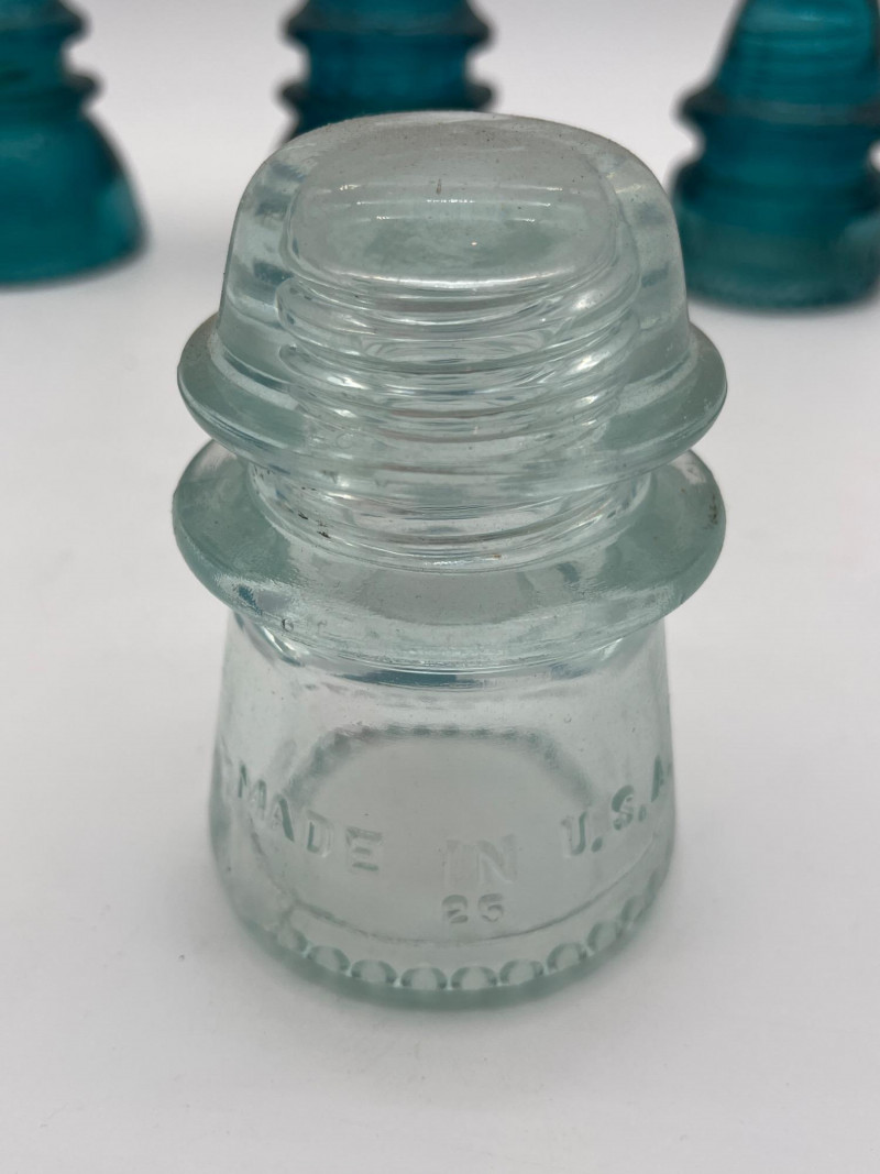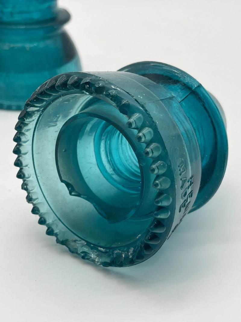 Hemingray Blue and Teal Glass Insulators See photos for details regarding condition.