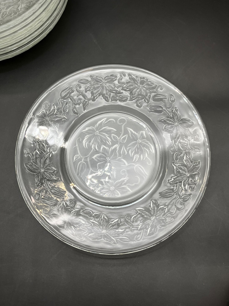 Princess House Fantasia Set of Eight 8" Salad Plates The center portion of these plates is frosted on the backside adding to their unique elegant look. They are in very good condition with no cracks or chips.