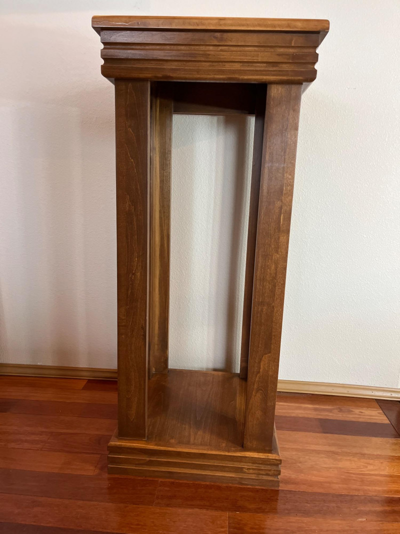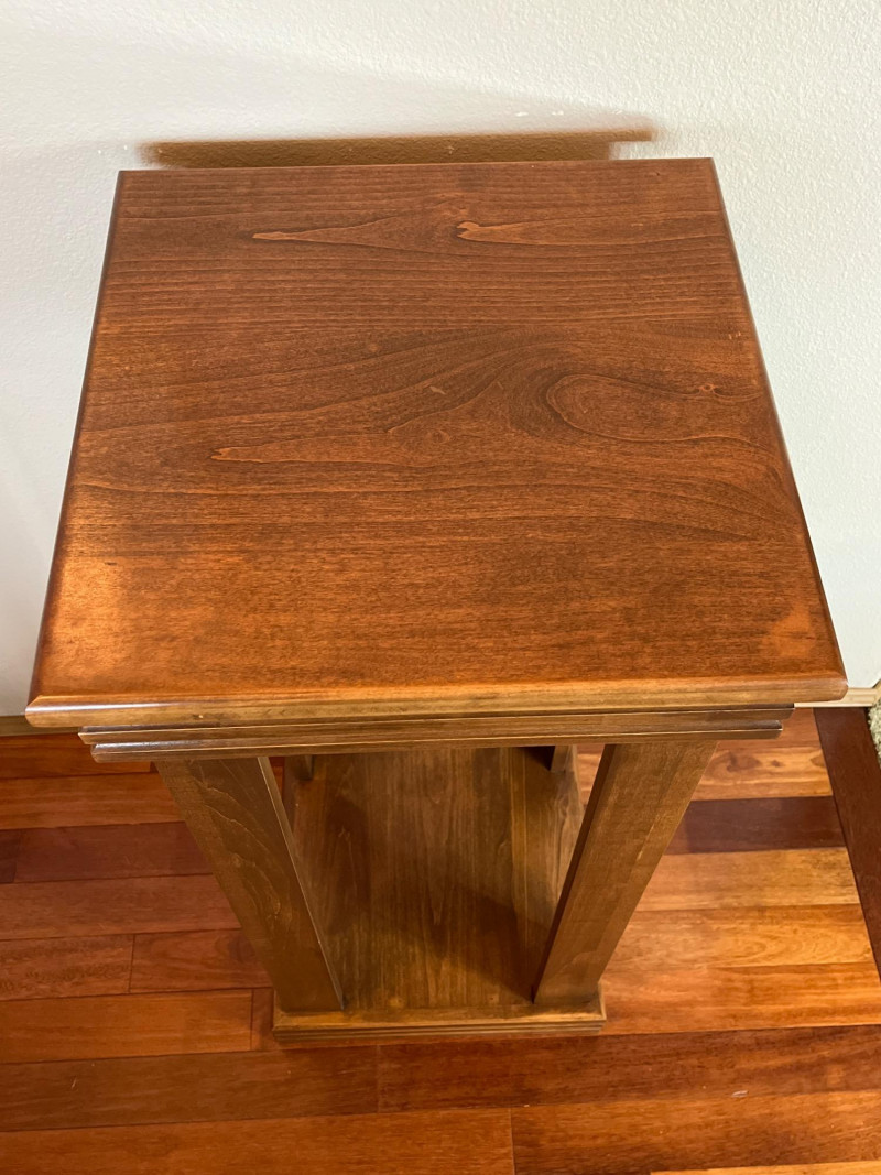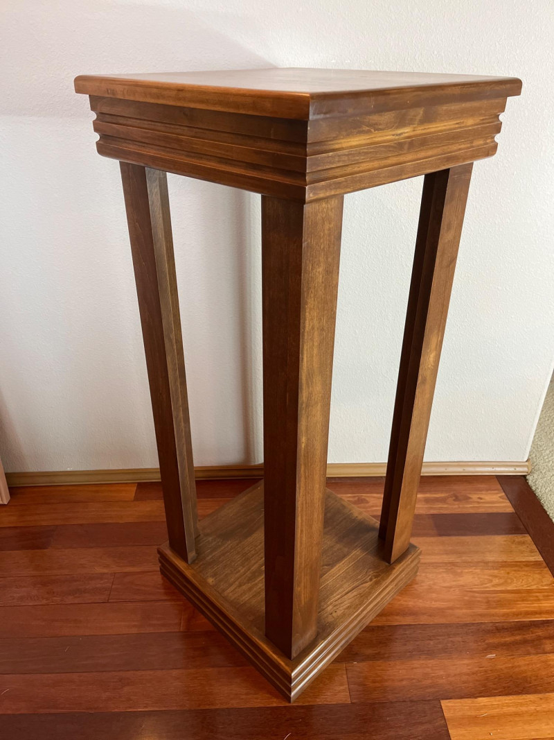 36" Tall Wooden Plant or Display Stand Measures 36" tall and 15" square. In very nice condition.