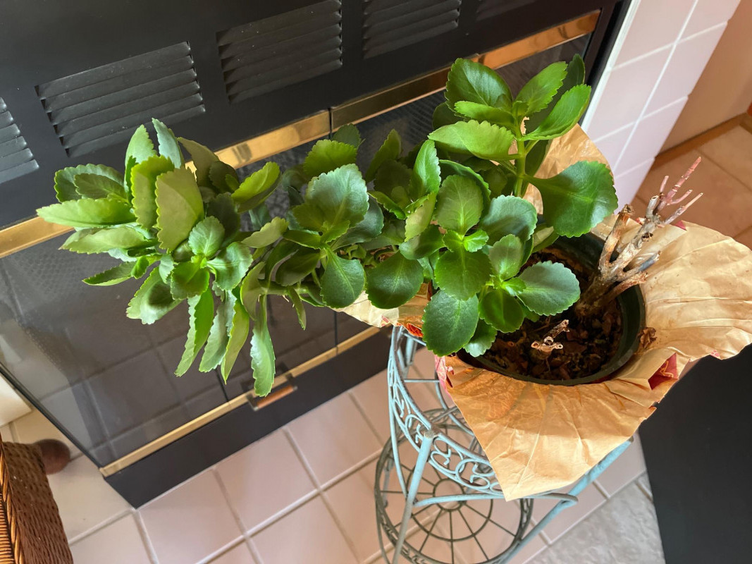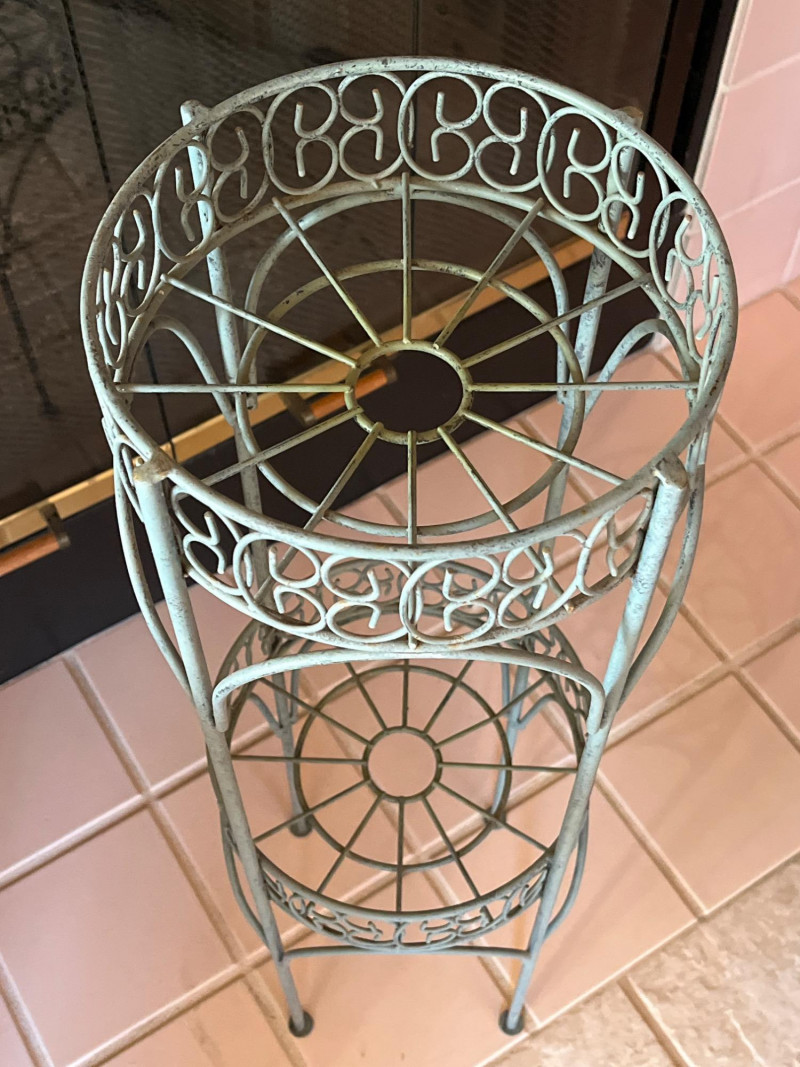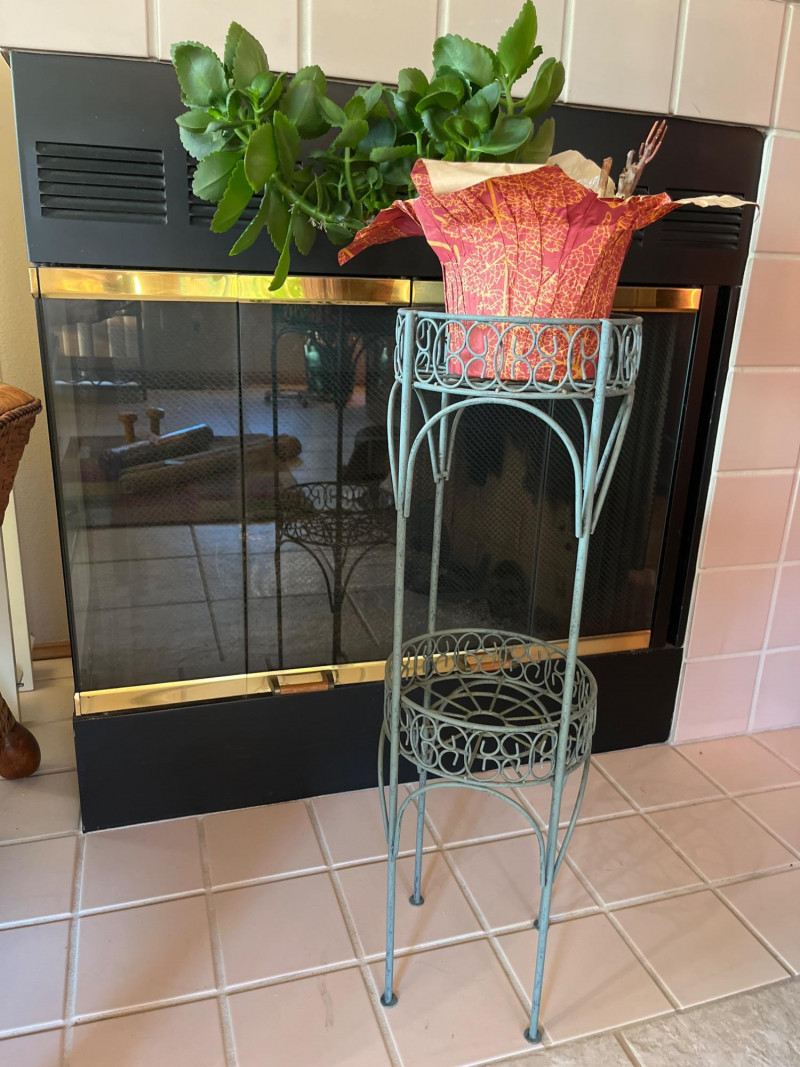 Metal 28" Tall Plant with Stand Sturdy and in good vintage condition.
