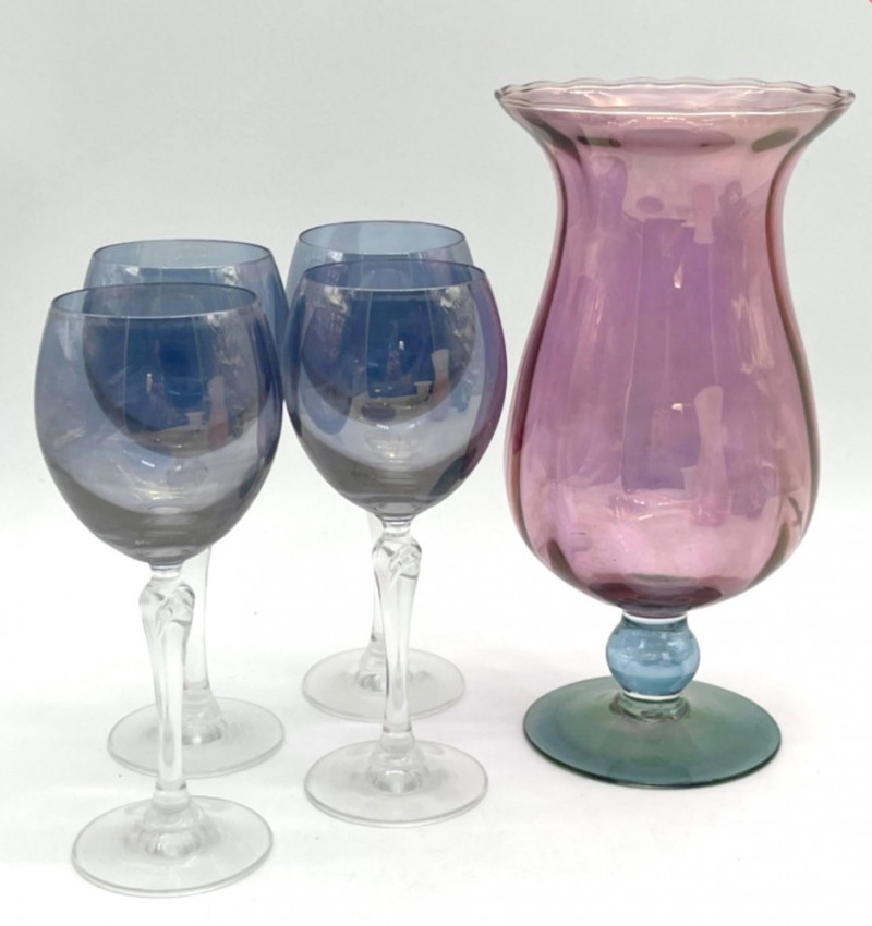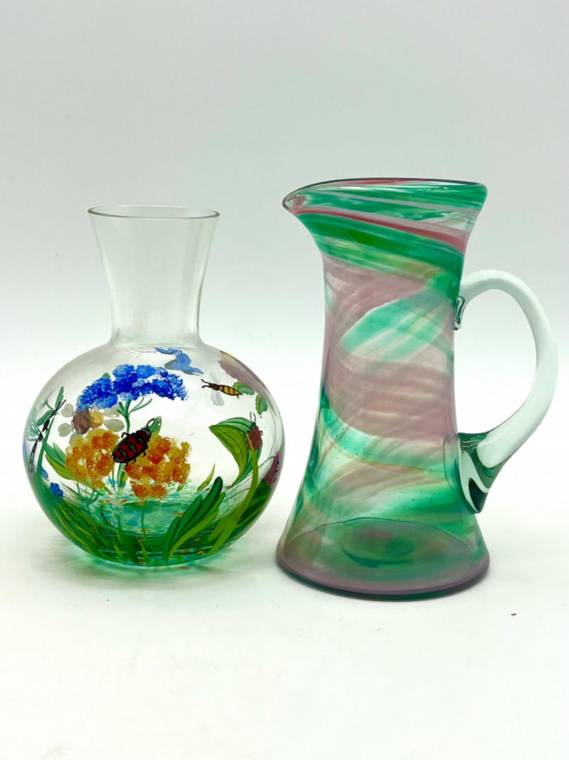 Colorful Glass Lot Featuring Uranium Glass Creamer and Sugar Bowl This cheerful lot includes: