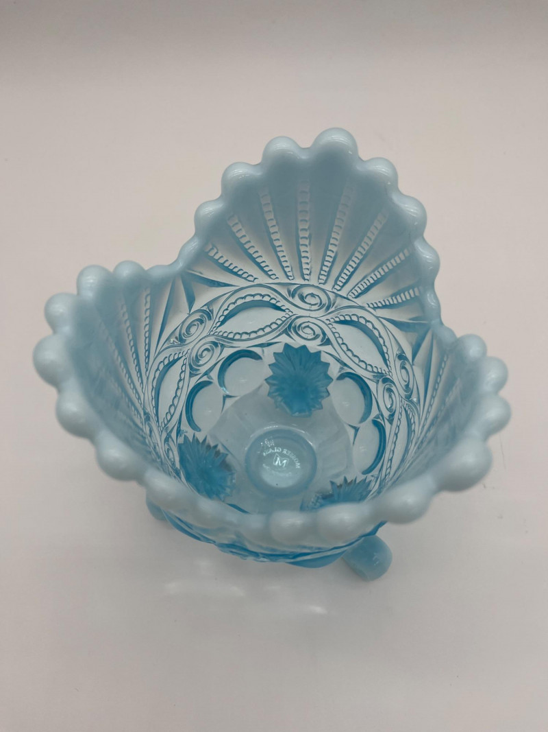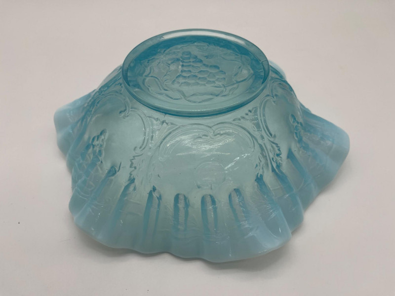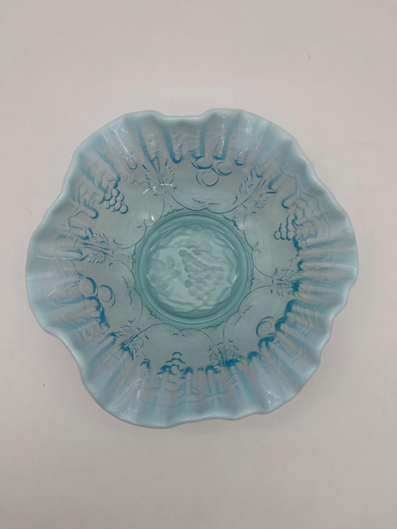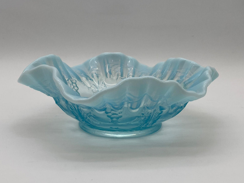 Lot # 2 - Blue Glass Lot feat. Fenton Double Crimped Opalescent 9" Ruffle Bowl