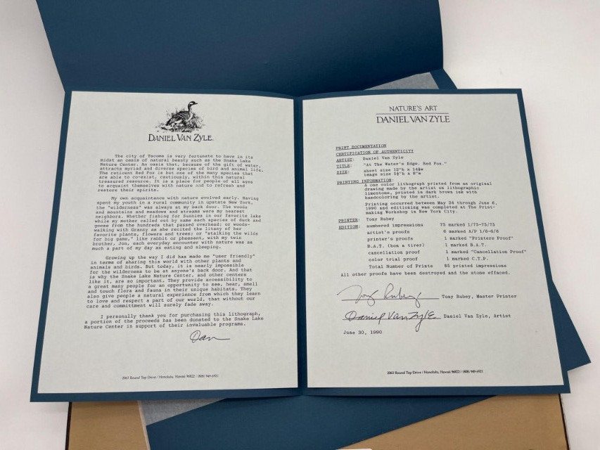 Two Daniel Van Zyle Lithographs in Matching Custom Frames Both pieces include signed authentication documents a are signed by the artist. They are professionally matted and framed.