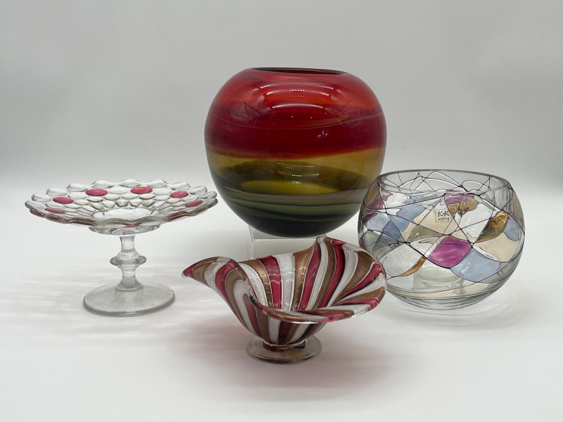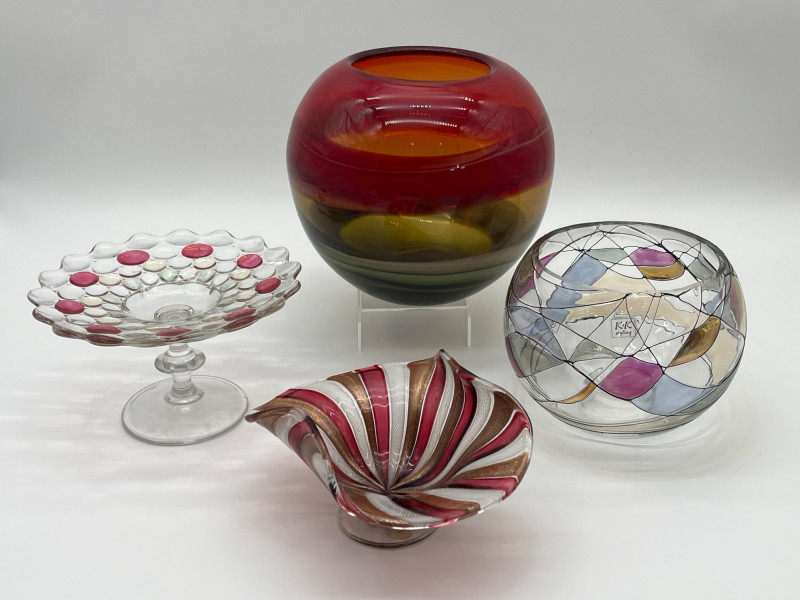 Lot # 45 - Art Glass feat, Westmoreland, K&K Styling, & Murano Latticino Bowl