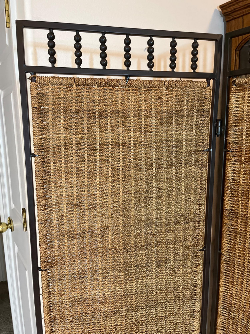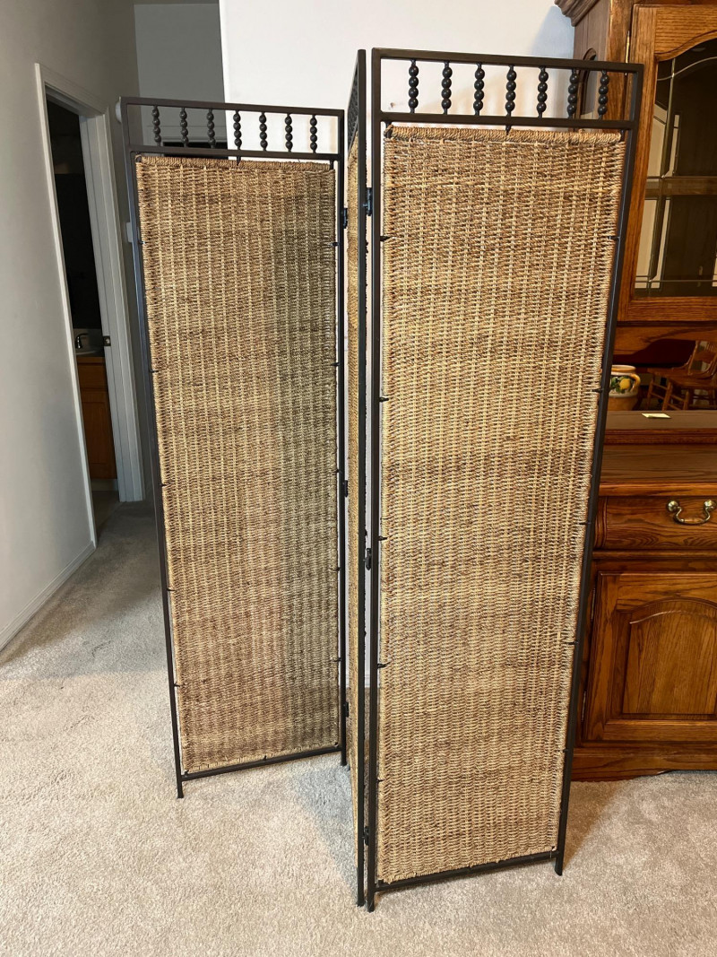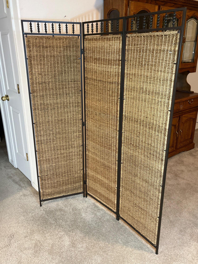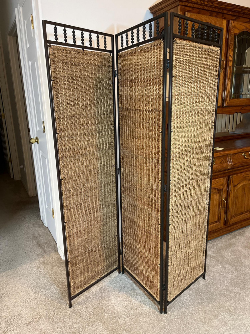 Rattan 3 Section 65" Tall Room Divider This is a great decorative and functional addition to any room! Room dividers can break up an open space or tie a room together as a backdrop. This room divider is a natural fiber with a metal frame and is in great condition with no signs of wear.