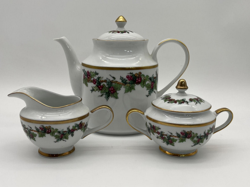 Lot # 62 - Royal Gallery China Holly and Ivy Teapot Set
