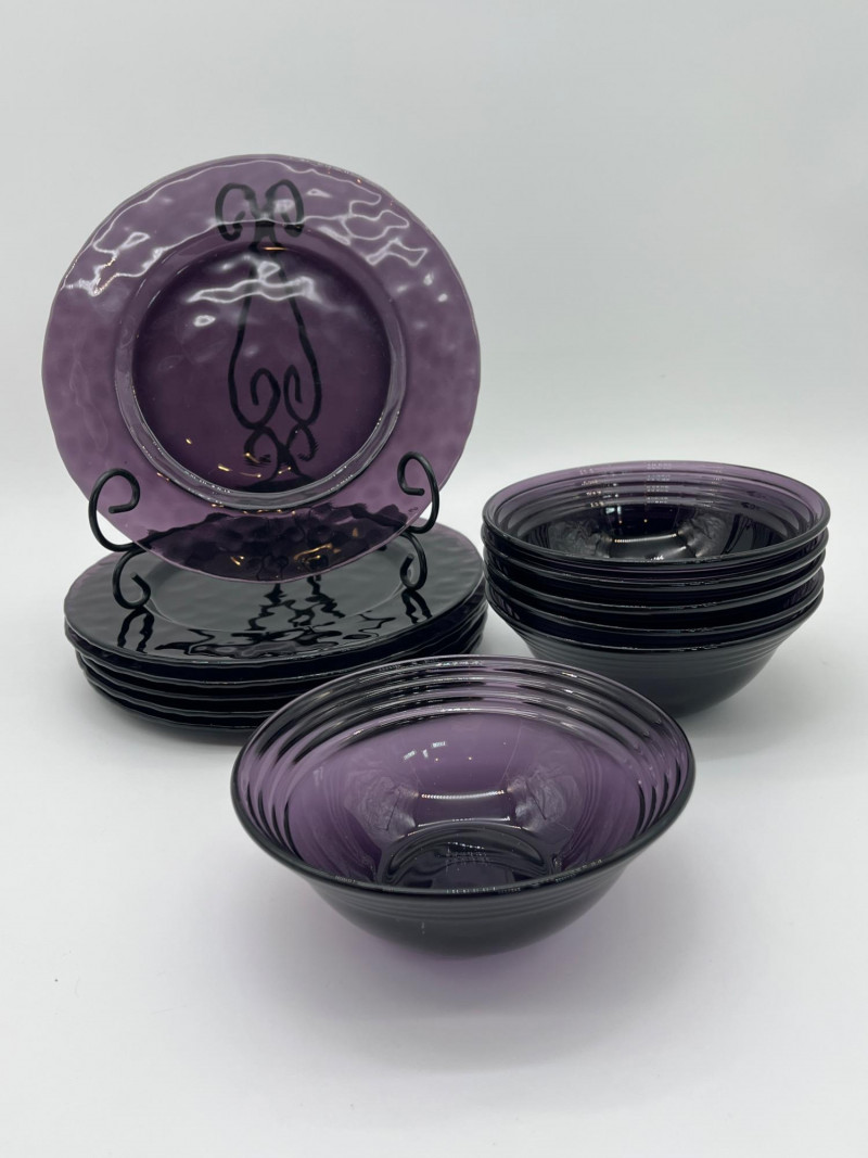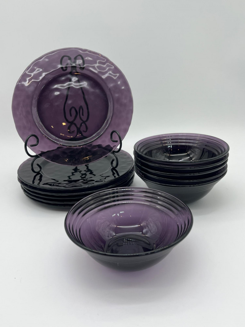 Lot # 65 - Purple Bormioli Rocco Glass Forum Bowls and Palatina Salad Plates