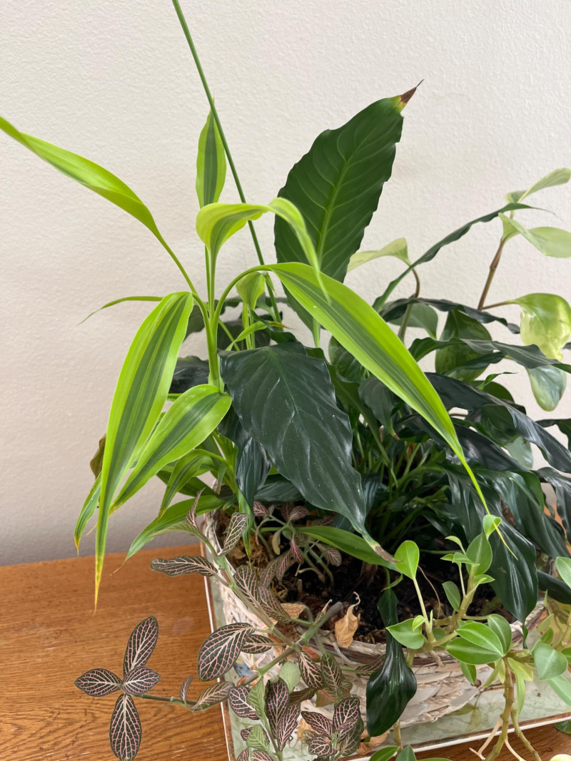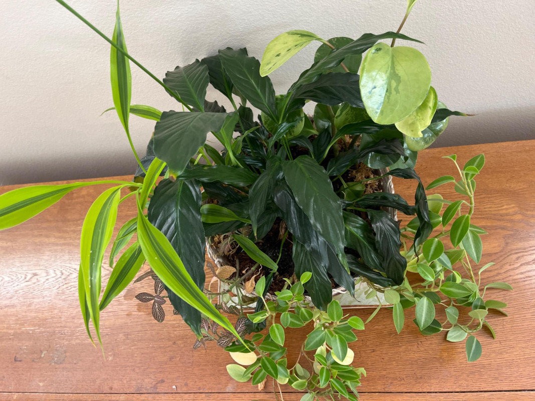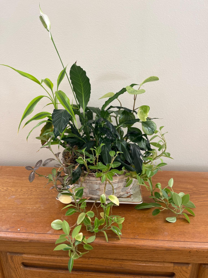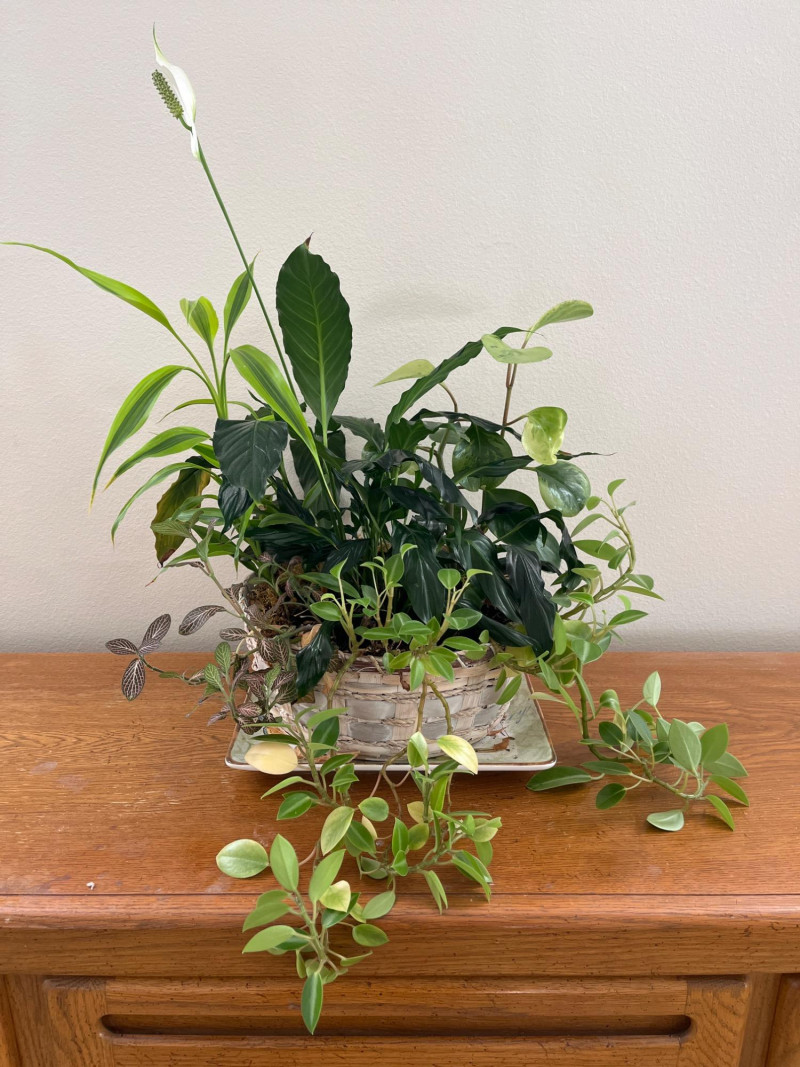Multiple Indoor Plants in One Basket Plants look to be in good health.