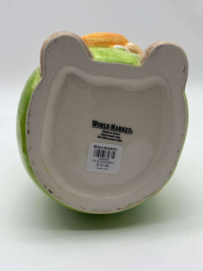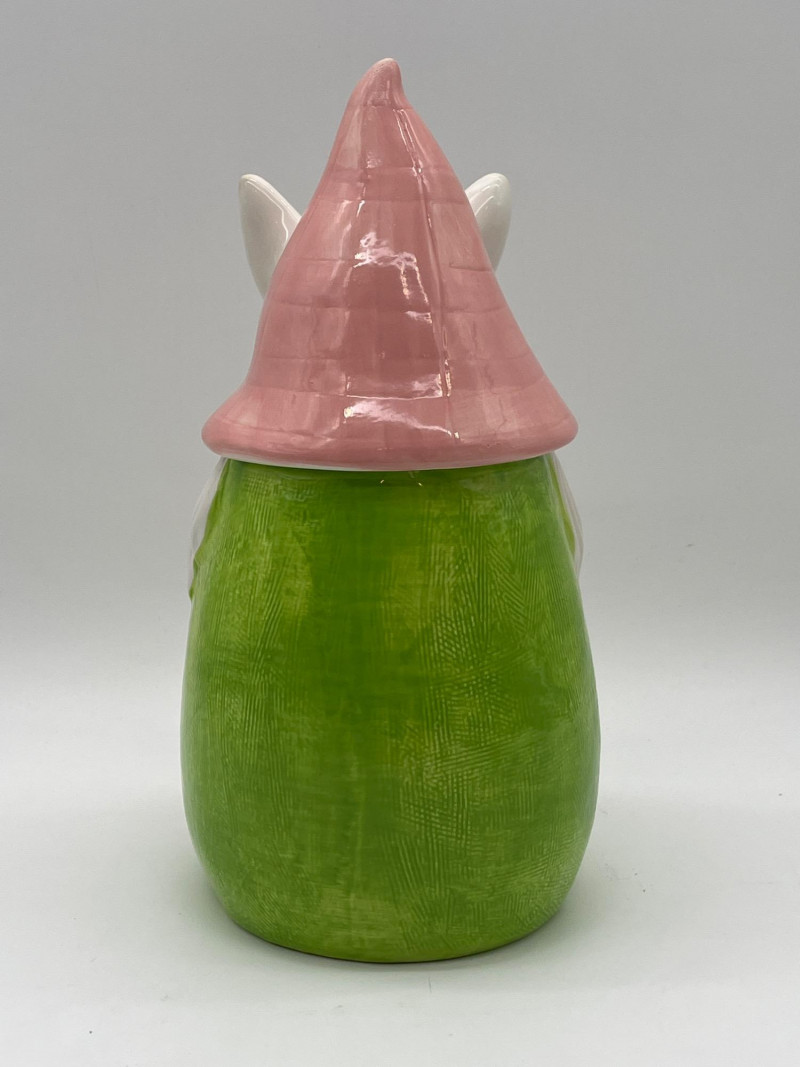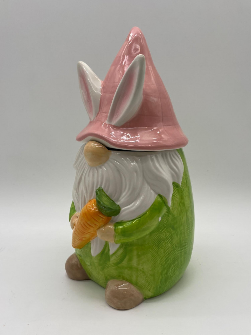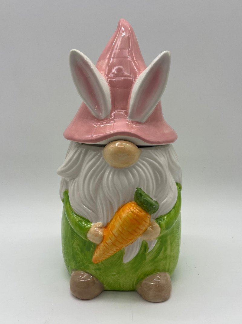 Gnome Cookie Jar This little dude is as ready for spring as I am! He's in good condition with just a little chip on his side which I show close-up in photos.