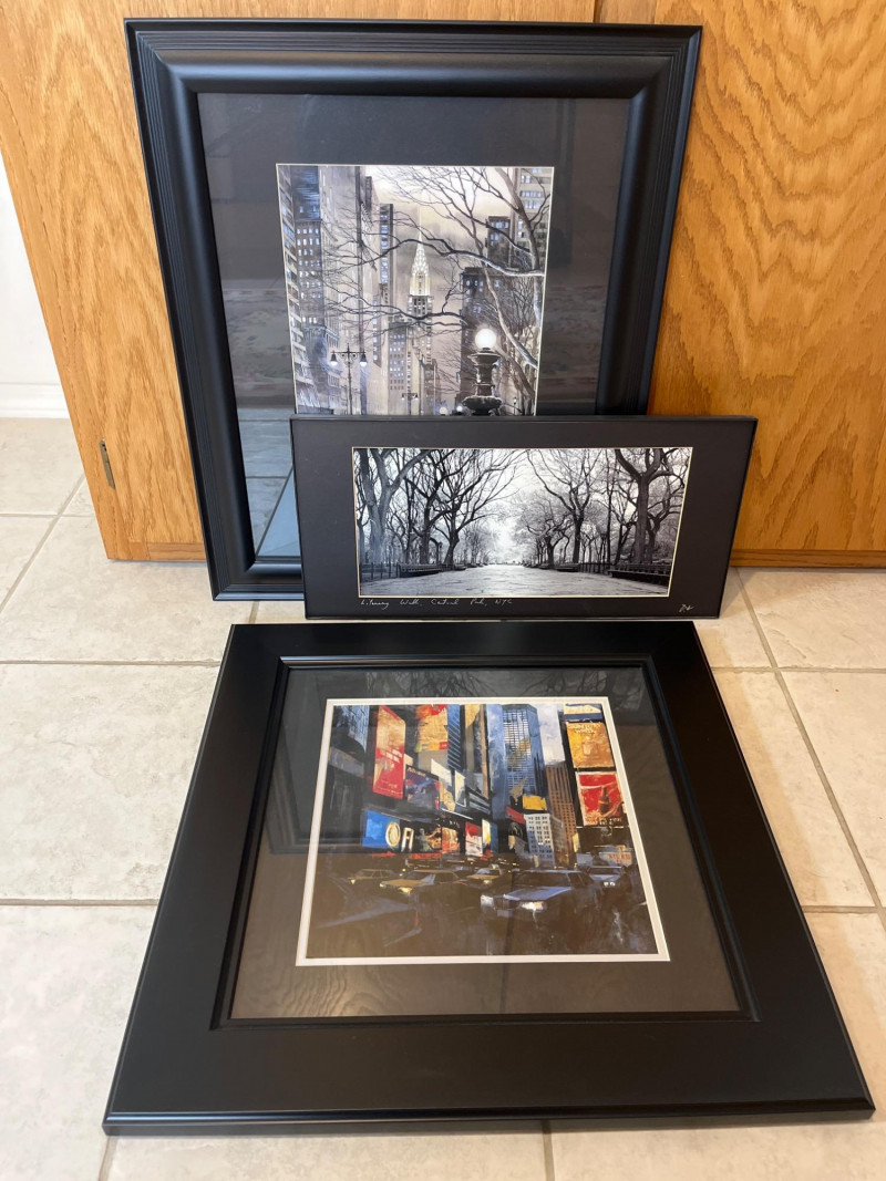 Elegant New York City Framed Art The largest piece is 24" tall and 20" wide.