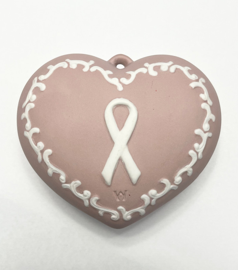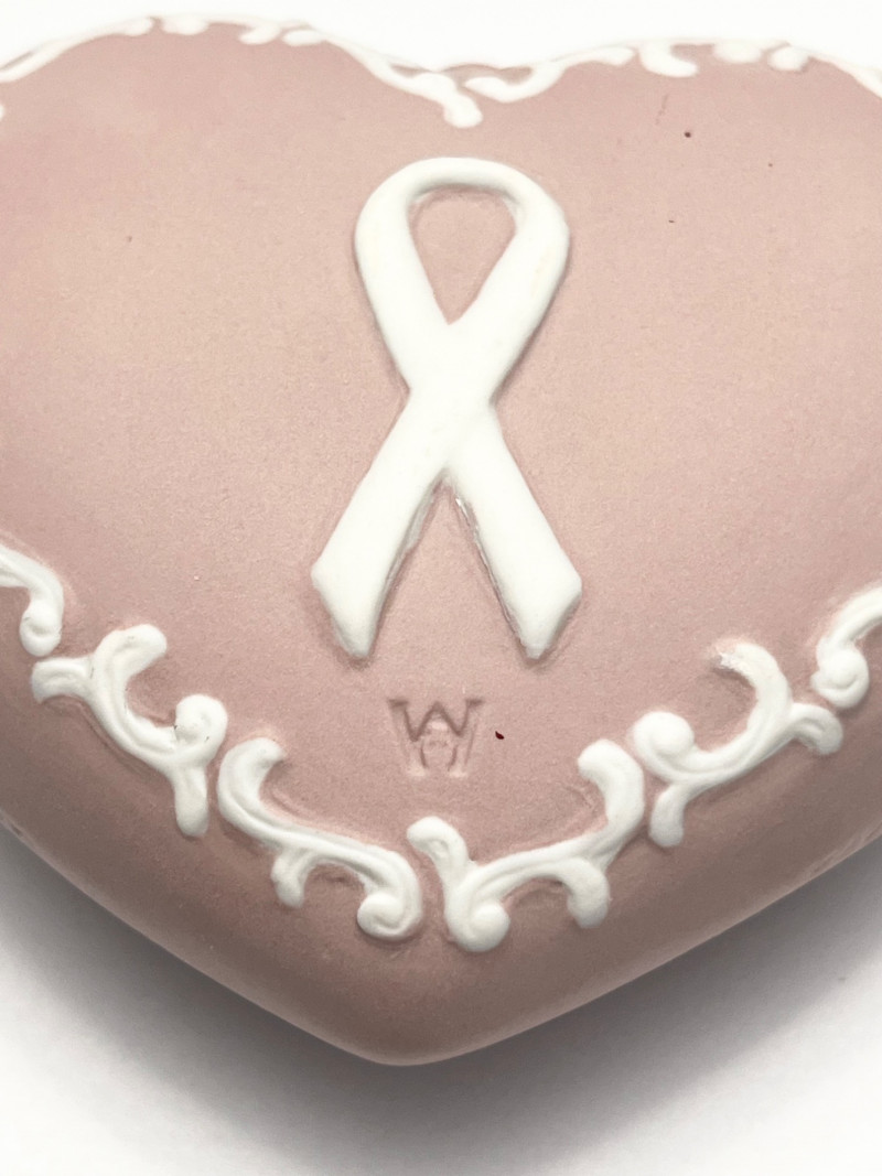 Lot # 216 - Pink Wedgwood Jasperware Heart Trinket Dish & Breast Cancer Ornament